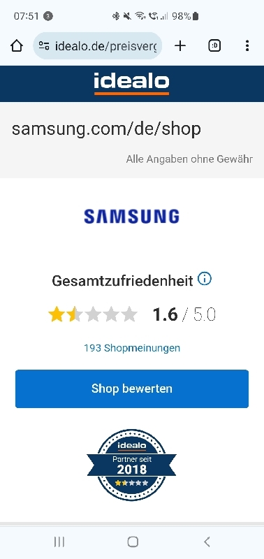 Tom_188 (Gast) 20.11.2023, 07:56 #Der Kundendienst vom Samsungshop soll lt Idealo und den Bewertungen dort ja unterirdisch sein.Hat da jemand ähnliche Erfahrungen gemacht.