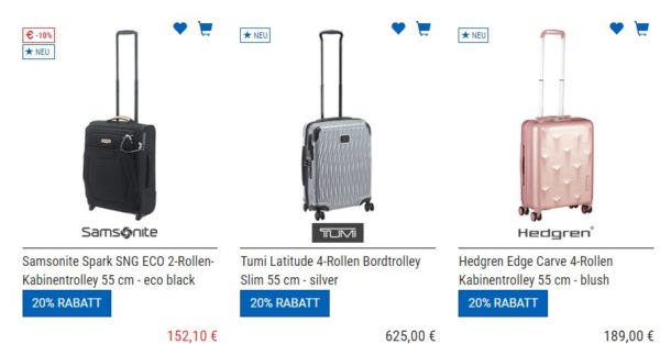 Koffer-Direkt: 20% Rabatt auf alle nicht reduzierten Produkte + 5% Extra-Rabatt bei Vorkasse
