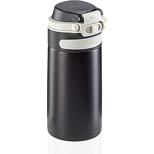 - Lieferumfang – Leifheit Thermobecher Flip 350ml, BPA frei, hält 6 Stunden heiß, ideal für den Getränkehalter im Auto geeignet, schwarz, Artikelnummer: 3243