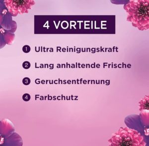 - 4 VORTEILE: 1. Ultra Reinigungskraft 2. Lang anhaltende Frische 3. Geruchsentfernung 4. Strahlende Reinheit