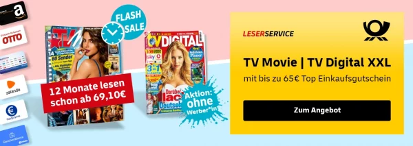 LeserService: Jahresabo TV Movie oder TV Digital XXL mit erhöhten Prämien