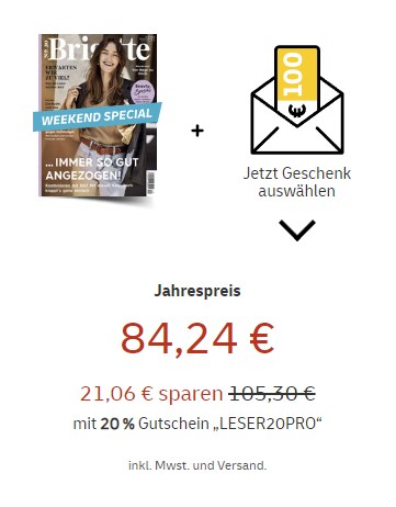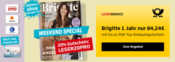 LeserService Weekend Special – Brigitte Jahresabo für 84,24€ + bis zu 90€ Prämie