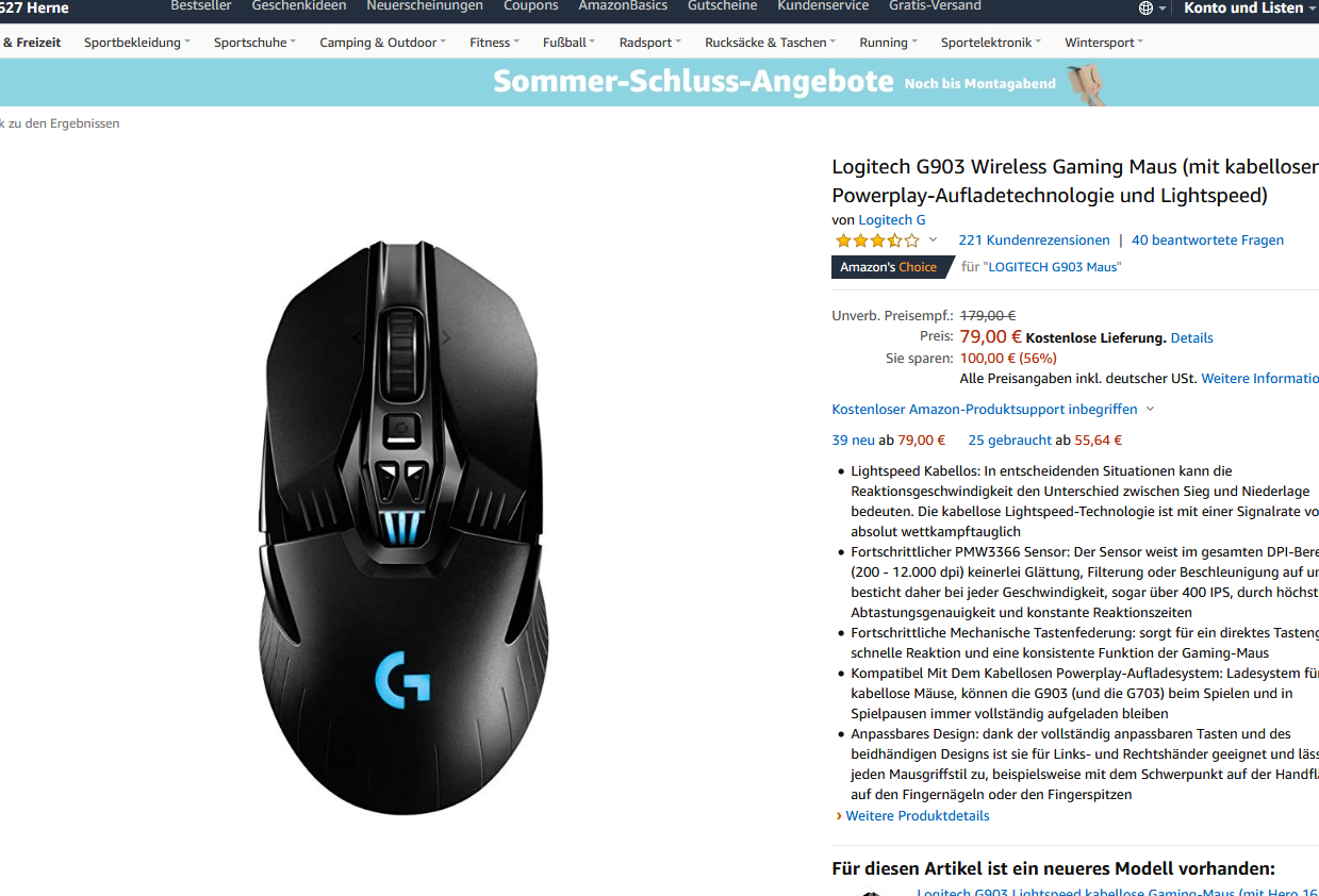 Bei MediaMarkt bekommt man die LOGITECH G903 Maus für 79€ (Vergleichspreis: ~95€) Ersparnis ~16€.
