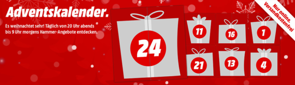 Bei MediaMarkt gibt es im heutigen Adventskalender die folgenden Angebote:
