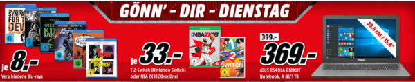 Es ist bei Mediamarkt wieder soweit – heute ist wieder „Gönn‘ dir Dienstag“ angesagt, welcher bis Morgen 09:00 Uhr läuft.
