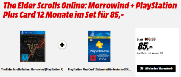 - The Elder Scrolls Online: Morrowind [PlayStation 4] inkl. PS4 Plus 12 Monate für 85€ (Vergleichspreis: ~35€ + ~54€) Ersparnis ~4€