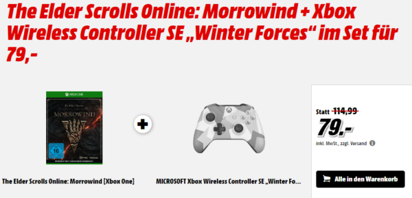 MediaMarkt: Gönn‘ dir Dienstag – z.B. Microsoft Xbox Wireless Controller SE „Winter Forces“ inkl. The Elder Scrolls Online: Morrowind [Xbox One] für 79€