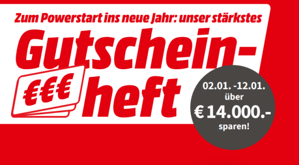 Im Rahmen der Gutscheinheft Aktion bei MediaMarkt erhaltet ihr bis einschließlich 13. Januar (9 Uhr) Geschenke bzw. Sofortrabatte auf verschiedene Artikel. Hier einige Beispiele: