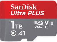- SANDISK Ultra® PLUS microSDXC™‐UHS‐I‐Karte, Micro-SDXC Speicherkarte, 1 TB, 160 MB/s für 71,42€ (Vergleichspreis: ~85€) Ersparnis 13,58€