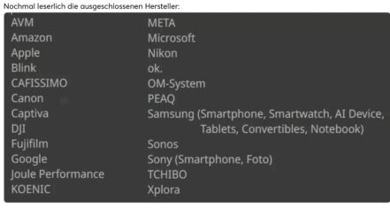 Von Ausschlüssen habe ich noch keine Informationen. Kann aber durchaus noch kommen… Wir ergänzen den Beitrag natürlich sobald bekannt. 🙂