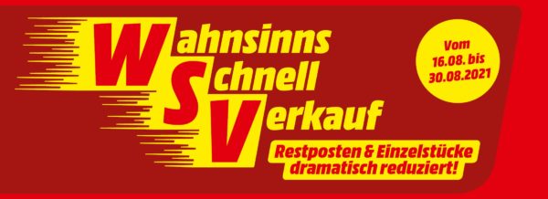 Im Rahmen des WSV (Wahnsinns-Schnell-Verkauf) erhaltet ihr bei MediaMarkt bis einschließlich 30. August wieder folgende Rabatte bzw. Angebote: