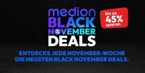 Im Onlineshop von Medion sind nun die Black November Deals gestartet, mit Angeboten aus vielen Bereichen wie z.B. TVs, Notebooks, Saugroboter