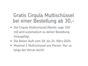 Sehr schöne Aktion im Onlineshop von Mepal, dort bekommt ihr gerade ab einem Bestellwert von 30€ eine Cirqula Multischüssel gratis
