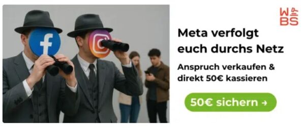 50€ für Meta-Tracking-Anspruch und das in nur 10-20 Minuten: Facebook und Instagram haben ohne eure Erlaubnis euer Verhalten durchs Netz getrackt (oh Wunder, das war nicht abzusehen 😅), aber jetzt kommt der eigentliche Punkt: Das verstößt gegen europäisches Recht.