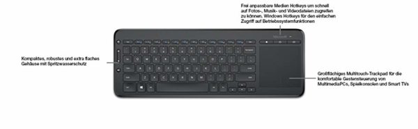- Besondere Merkmale: Kabellose Multimediatastatur fürs Wohnzimmer, Großflächiges Multitouch-Trackpad, Multimedia- und Windows 8-Hotkeys