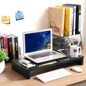 - Der ergonomische Monitorständer hebt nicht nur Ihren Bildschirm auf die richtige Höhe, sondern hilft auch dabei, einen aufgeräumten Schreibtisch dank seiner Ablagefächer zu erhalten; benutzerfreundlicher Kabelschlitz für Ordnung statt Kabelgewirr; geeignet für Monitore und Laptops aller Größen