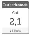 4,2 von 5 Sterne. Bei Testberichte.de fällt das Gesamturteil mit „gut“ (2,1) ebenfalls gut aus.