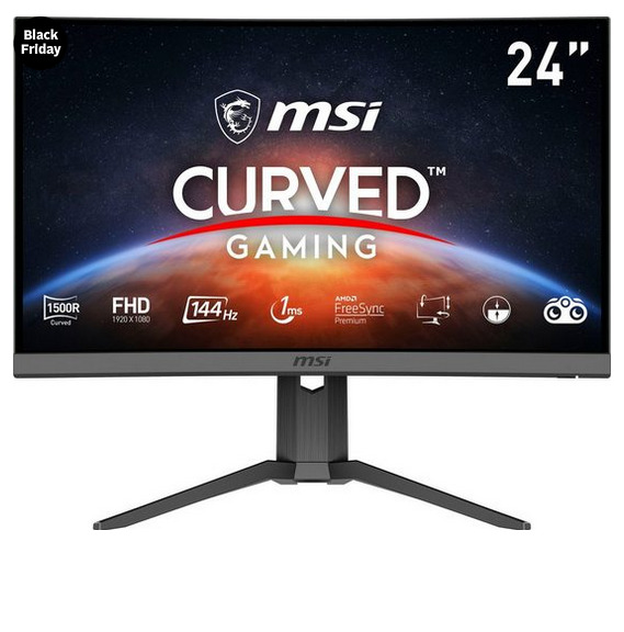MSI Optix G24C6PDEMaximale Performance, minimaler PreisDer Curved-Gaming-Monitor ist die ideale Lösung für Gamer, die eine überragende Leistung zu einem attraktivem Preis suchen. Mit einer Bildwiederholrate von 144 Hz und der FreeSync-Premium-Technologie liefert der Monitor schlierenfreie und gestochen scharfe Bilder, während die rasante Reaktionszeit von 1 ms für einen Bildaufbau in eSports-Geschwindigkeit sorgt. Der erweiterte Farbraum mit 115% SRGB-Abdeckung garantiert dabei eine realistische und lebendige Darstellung. Die starke R1500-Krümmung des 23,6″-Curved-Displays ist speziell auf die Bedürfnisse von PC-Gamern ausgelegt und lässt sie direkt in ihre Spiele eintauchen. Auch die Ergonomie nimmt beim Optix G24C6PDE einen hohen Stellenwert ein: Der Monitor lässt in Höhe und Neigung verstellen, sodass er mühelos in die gewünschte Position gebracht werden kann. Augenschonende Display-Technologien wie Anti-Flicker und Less Blue Light sorgen dafür, dass man auch nach längeren Gaming-Sessions nicht mit ermüdeten Augen zu kämpfen hat.Der MSI Optix G24C6PDE lässt deine Games in ihrem schönsten Licht erstrahlen und ist mit seinem schlanken und rahmenlosen Design außerdem ein echtes Schmuckstück in jedem Gaming-Setup.