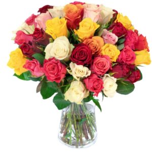 - Inhalt: 33 bunte Rosen (40-50cm Länge, angeschnitten)