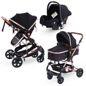 - 3 in 1 Kombikinderwagen mit Babywanne, Buggy-Sportsitz und Auto-Babyschale