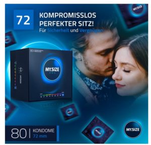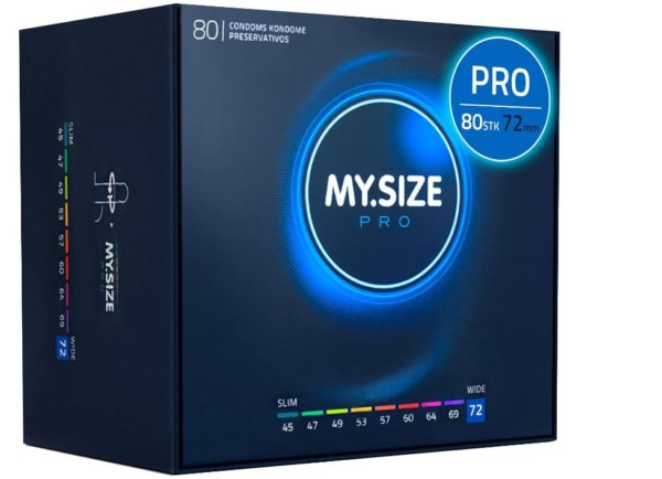 - MY.SIZE PRO Kondom, Breite 72mm, 80 Stück. Erhältlich in weiteren nominalen Breiten. CE gekennzeichnet. Gemäß EU-Richtlinie für Medizinprodukte 93/42 EWG. Mit Gratis Online Measuring App.