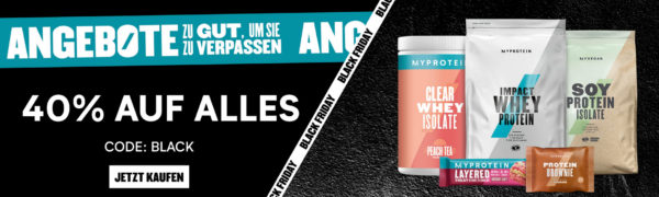 Im Onlineshop von MyProtein erhaltet ihr zur Black Week satte 40% oder sogar 41% Rabatt auf ALLES!