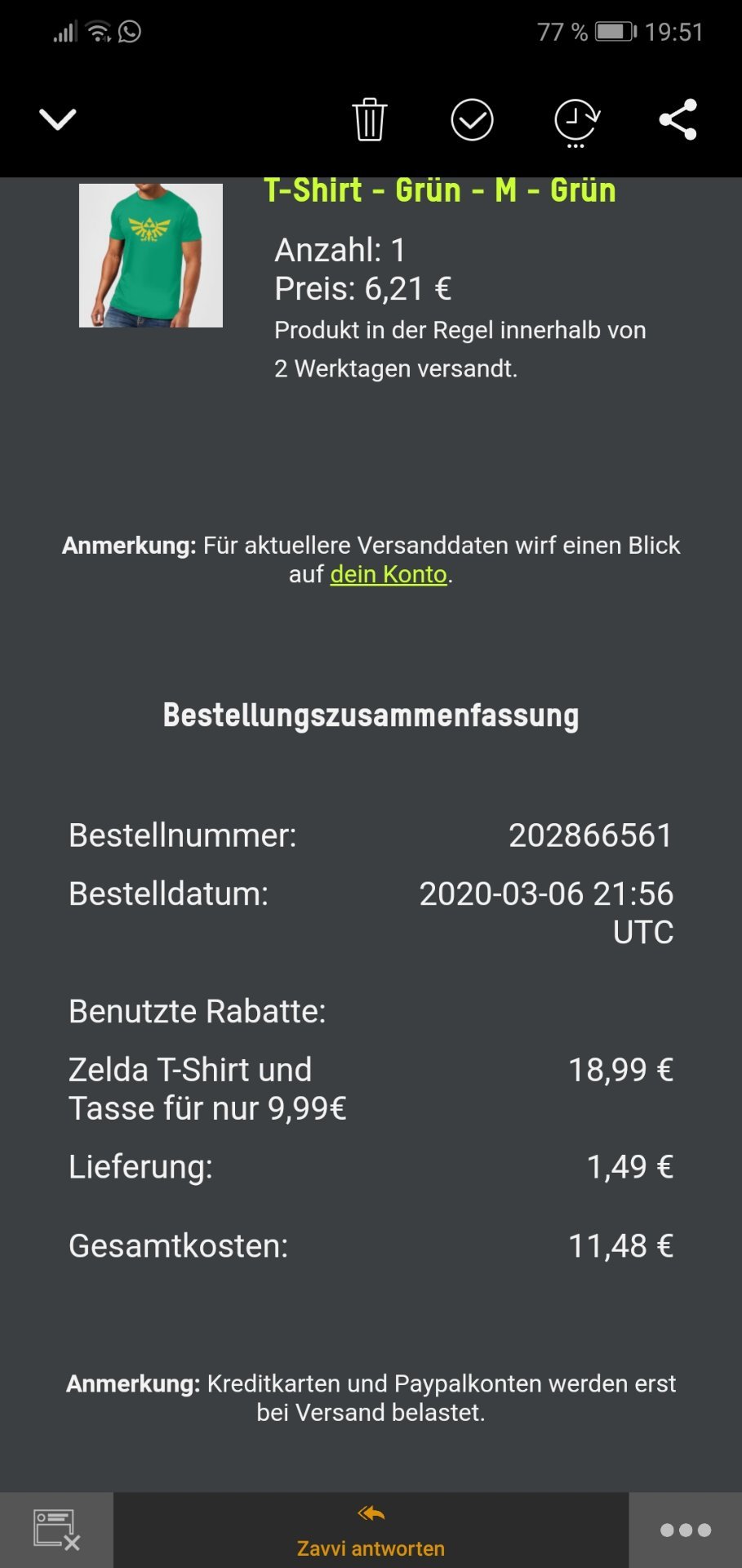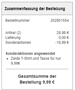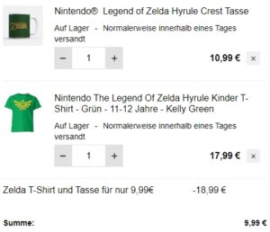 Denn bei Zavvi bekommt man ein Nintendo Zelda T-Shirt + Zelda Tasse zusammen für 9,99€ (regulärer Preis: ~29€) Ersparnis ~19€.