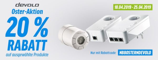 Bei Notebooksbilliger ist nun auch eine Osteraktion gestartet bei der ihr 20% Rabatt auf ausgewählte devolo Produkte bekommt.
