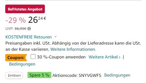 Bei wird als Normalpreis ohne Einlösung von Coupons 26,24€ angezeigt…