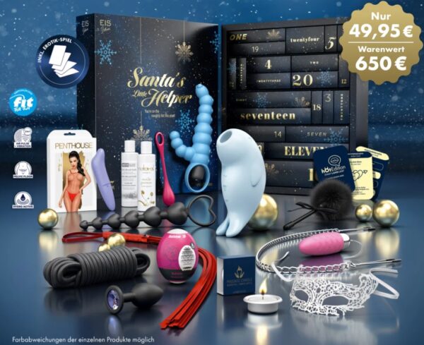 Der Eis.de Adventskalender ist speziell für Erwachsene konzipiert und bietet jeden Tag der Vorweihnachtszeit eine besondere Überraschung. Hinter den 24 Türchen verbergen sich eine Vielzahl von erotischen Produkten, darunter Toys, Dessous und sinnliche Pflegeartikel. Der Kalender wird in verschiedenen Ausführungen angeboten, die auf individuelle Bedürfnisse zugeschnitten sind, wie zum Beispiel für Paare oder Singles.