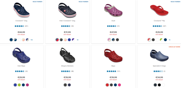 Im Onlineshop von Crocs bekommt ihr nur heute 30% Rabatt auf ausgewählte Produkte + kostenloser Versand