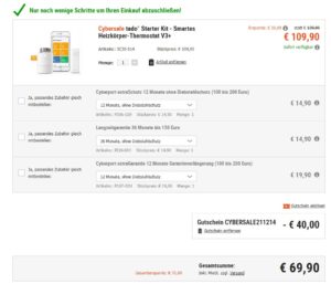 Bei Cyberport bekommt ihr das tado° Starter Kit – Smartes Heizkörper-Thermostat V3+ für 69,90€ (Vergleichspreis ~90€) Ersparnis ~20€