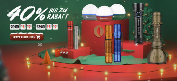 Im offiziellen Store von OLIGHT erhaltet ihr im Rahmen des X-MAS SALE bis einschließlich 18. Dezember (23:59 Uhr) bis zu 40% Rabatt!