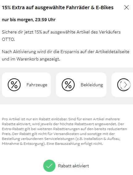 ⏰ OTTO: 15% Rabatt auf Fahrräder & E-Bikes