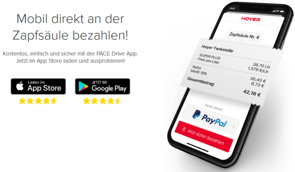 Pace Drive: Mit der Tank-App bis zu 13ct/Liter sparen & bezahlen per App
