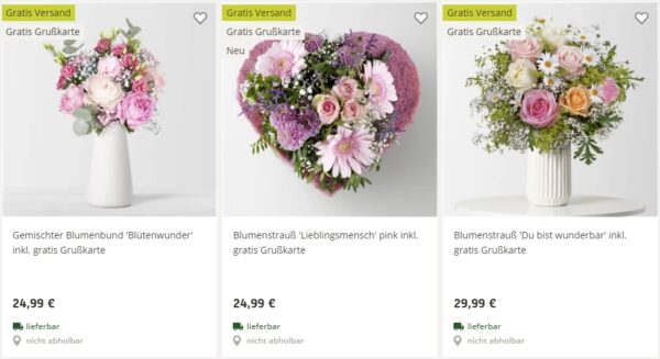 - Gültig für Blumensträuße, Blumenbunde und Rosen im Übertopf
