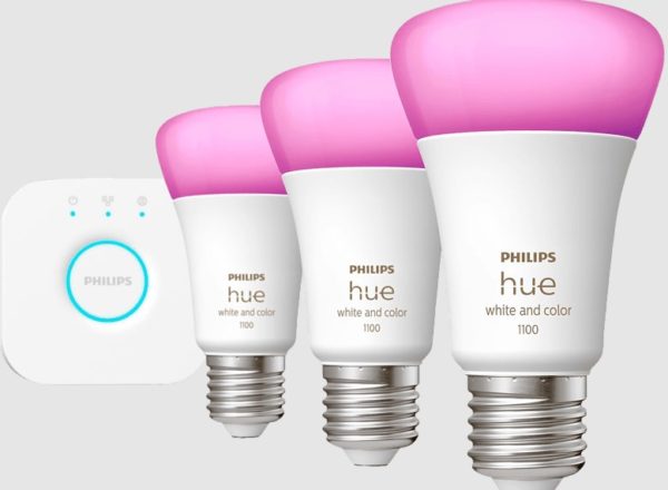 PHILIPS Hue White und Col. Amb. E27 LED 3-er Starter Set inkl. Hue Bridge für 79,99€