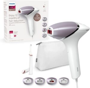 - Im Lieferumfang enthalten: 1x Philips Lumea IPL Haarentfernungsgerät 8000 Series (BRI949/00), 1x Satin Compact Korrekturtrimmer, 4x Aufsätze für Körper, Gesicht, Bikinizone und Achselhöhlen, 1x Aufbewahrungstasche