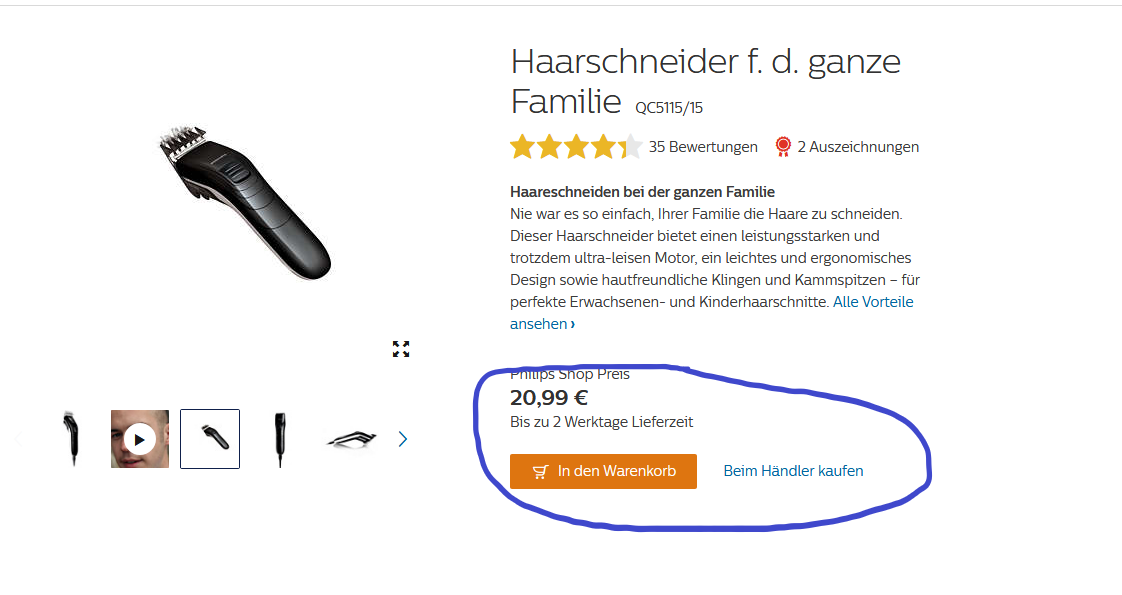 Bei Philips bekommt man die Philips QC5115/15 Haarschneidemaschine für 20,99€ (Vergleichspreis: ~32€) Ersparnis ~11€