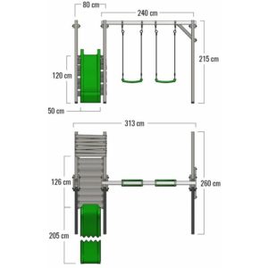 - Schaukelbalken 9×9 cm und Standpfosten 7×7 cm