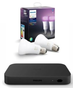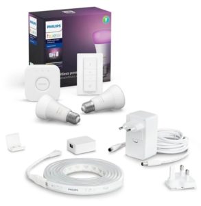 - 2m Lightstrip, der Hue Bridge + Dimmschalter + 2x Hue E27 Color für 149,90€ (Vergleichspreis: ~196€) Ersparnis ~46€