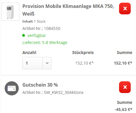 Denn bei Norma24 bekommt man die Provision Mobile Klimaanlage MKA 750 für 111,42€ (Vergleichspreis: ~169€) Ersparnis ~58€