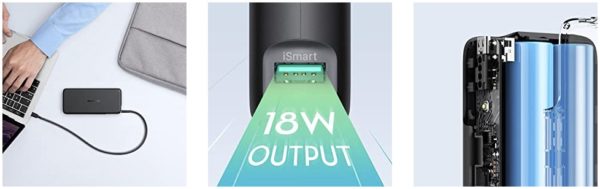 - Blitzschnelles Parallelpower Durch die automatische Anpassung an deinen Stromverbrauch kannst du mehrere verschiedene Geräte gleichzeitig aufladen.Die beiden 60W Ports laden zwei Geräte gleichzeitig mit der Höchstgeschwindigkeit – 45W via USB-C und 18W via USB-A. Qualcomms QuickCharge 3.0 Technologie lädt kompatible Geräte bis zu 85% schneller.