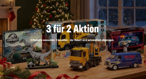 Noch auf der Suche nach einem passenden Weihnachtsgeschenk, im Revell-Shop ist eine 3 für 2 Aktion (Modellbau, 3D Puzzle uvm.) gestartet.
