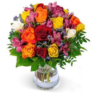 Rosenstrauß „Farbtraum“ mit über 40 Blüten & GRATIS Vase für 24,98€