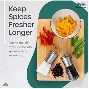 - Die Salz und Pfeffermühle hat ein Glas Gehäuse mit Edelstahl Deckel. Das schützt vor Feuchtigkeit und sorgt für langanhaltende Frische sowie ein herrliches Aroma. Denn: Frisch gemahlene Gewürze schmecken besser.
