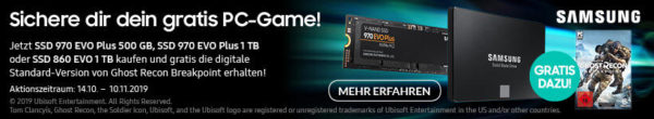 Samsung 970 Evo Plus SSD-Speicher (NVMe, M2, 500 GB) + PC-Spiel Tom Clancy’s Ghost Recon: Breakpoint für 94,90€