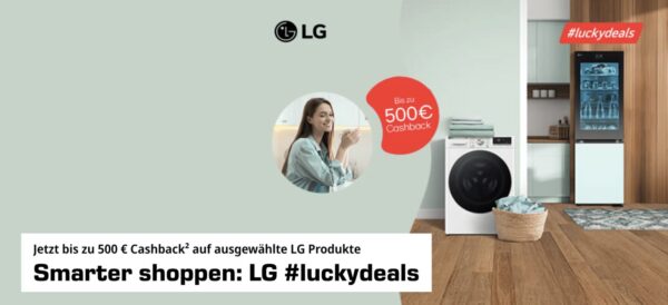 Im Rahmen der LG Lucky Deals erhaltet ihr bei Saturn bis einschließlich 30. April bis zu 500€ Cashback auf ausgewählte Artikel. 🙂