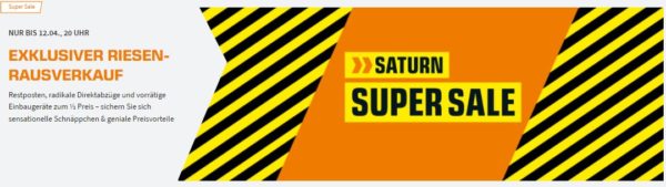 - Damit nicht genug: Auch beim Kauf vieler anderer Produkte können Kundinnen und Kunden beim „Saturn Super Sale“ kräftig sparen. So winken beim Kauf direkt verfügbarer Fernseher, Notebooks, Convertibles und PCs sensationelle Direktabzüge – gestaffelt nach Verkaufspreisen. Los geht es ab einem Verkaufspreis von 599€ mit einem Direktrabatt von 70€. Ab 799€ werden 90€ abgezogen, ab 999€ beträgt der Preisnachlass 150€, ab 1.499€ gibt es einen Direktabzug von 200€ und ab einem Verkaufspreis von 1.999€ spart man sogar satte 300€. Lediglich Produkte von Apple, Microsoft, Peaq und ok. sowie das Samsung Galaxy Book2 und Notebook Plus sind von der Aktion ausgeschlossen