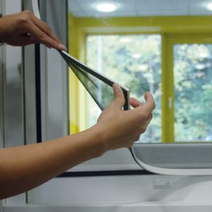 - Insektenschutz-Gewebe auf dem Rahmen platzieren und mit dem Magnetband eindruecken